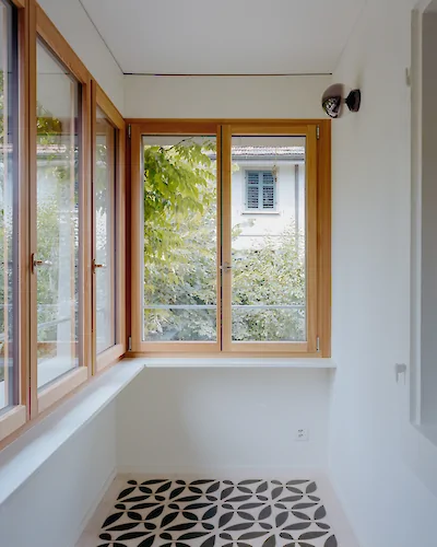 Das 1924 erbaute Wohnhaus am Aarauer Stadtbach liegt im historischen Gartenstadtquartier Gönhard. Sein äusseres Erscheinungsbild wird bewahrt und behutsam ergänzt: Neue Lärchenholzfenster, ein zusätzlicher Gartenausgang sowie sandgestrahlte Aussentreppen fügen sich harmonisch ins Gesamtbild ein.